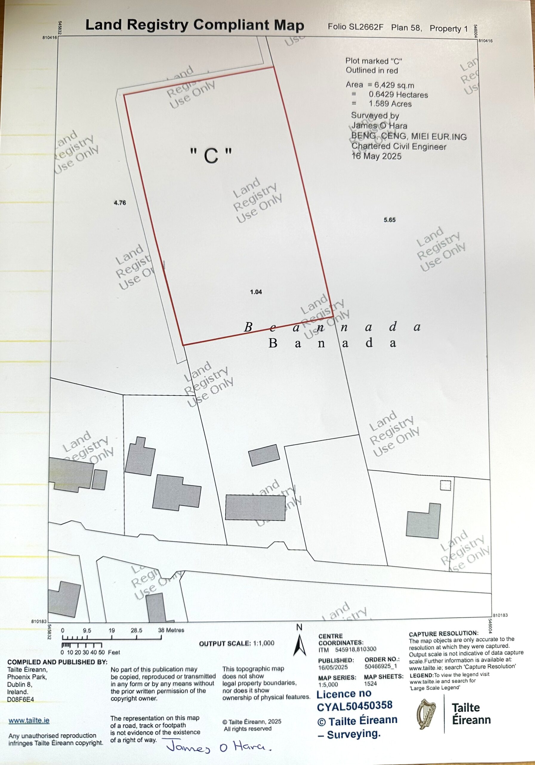 Lot 3:      Land:  c. 1.6 Acres                        €  15,000