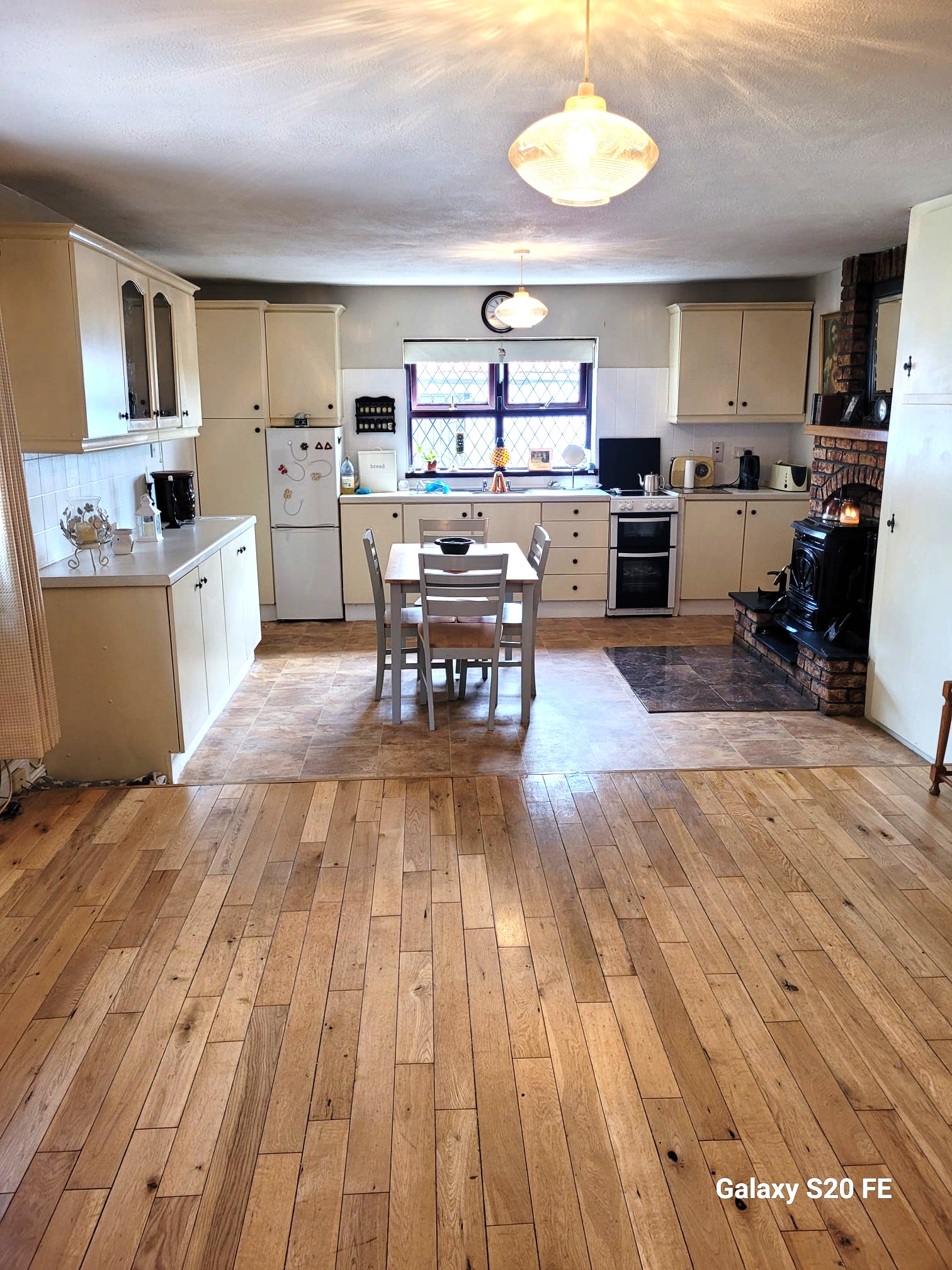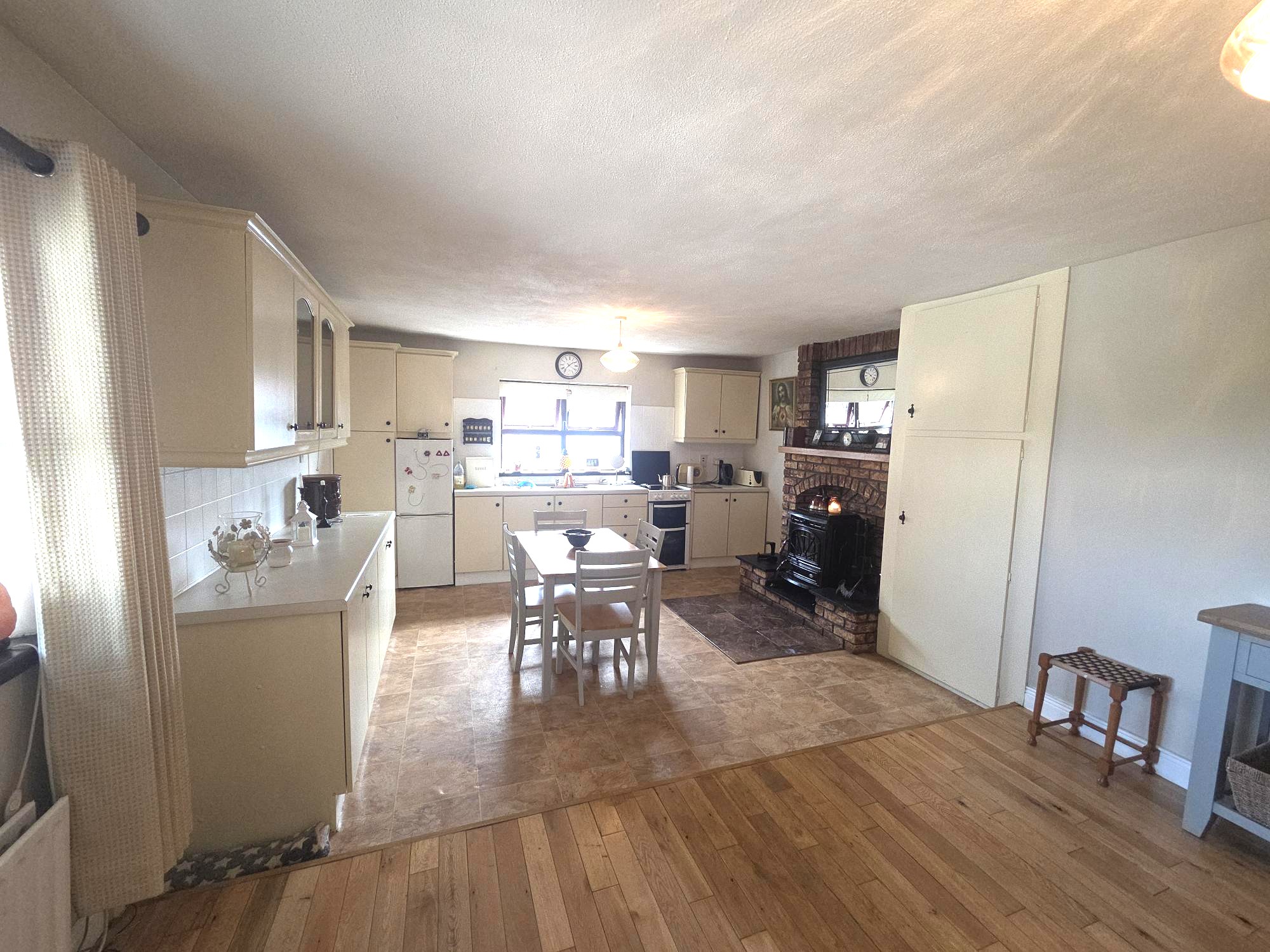 Kitchen/ 7.0 m x 3.9 m Tiled Floor and Solid Timber Flooring